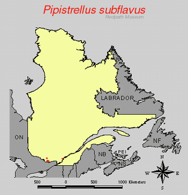 Distribution of the Eastern pipstril in Quebec: